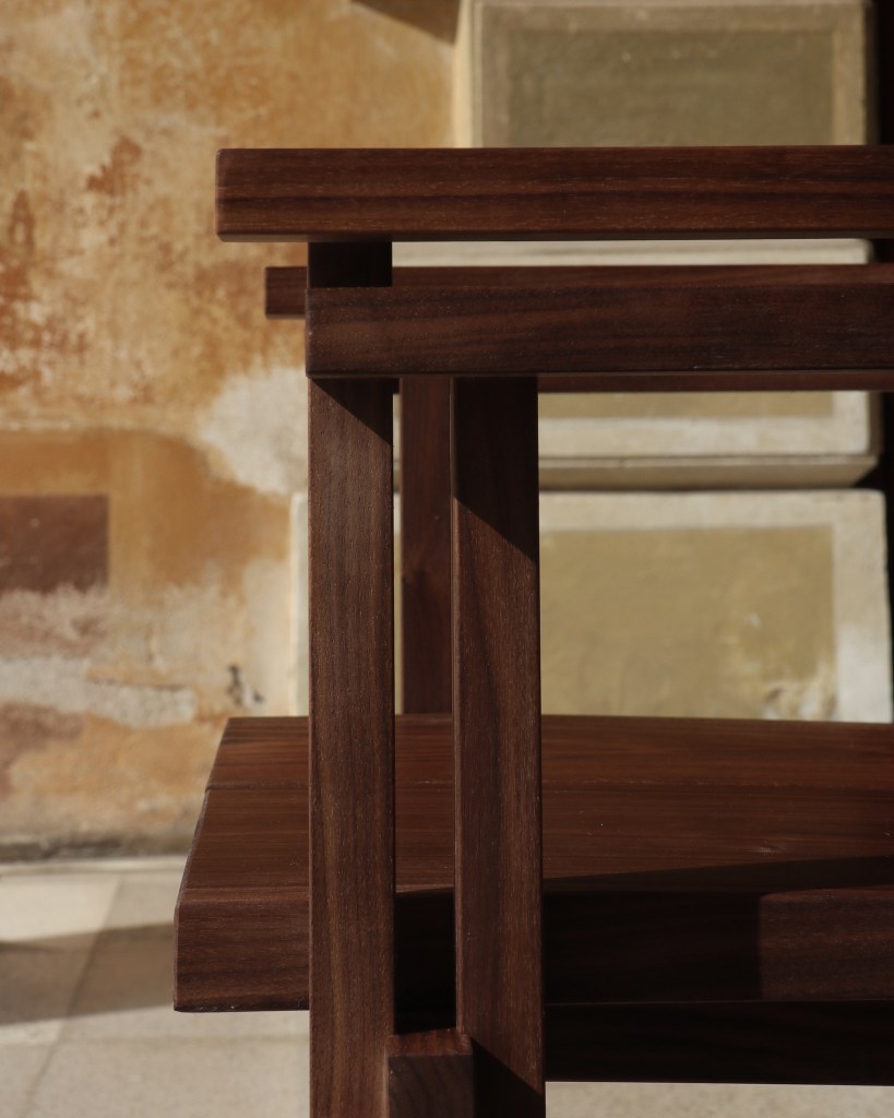 The Stack chair is a unique and innovative piece crafted entirely from solid wood. The design concept ingeniously plays with the idea of two chairs stacked one on top of the other, resulting in a doubling of the structure. This creative approach not only adds visual interest but also enhances the chair’s structural integrity.